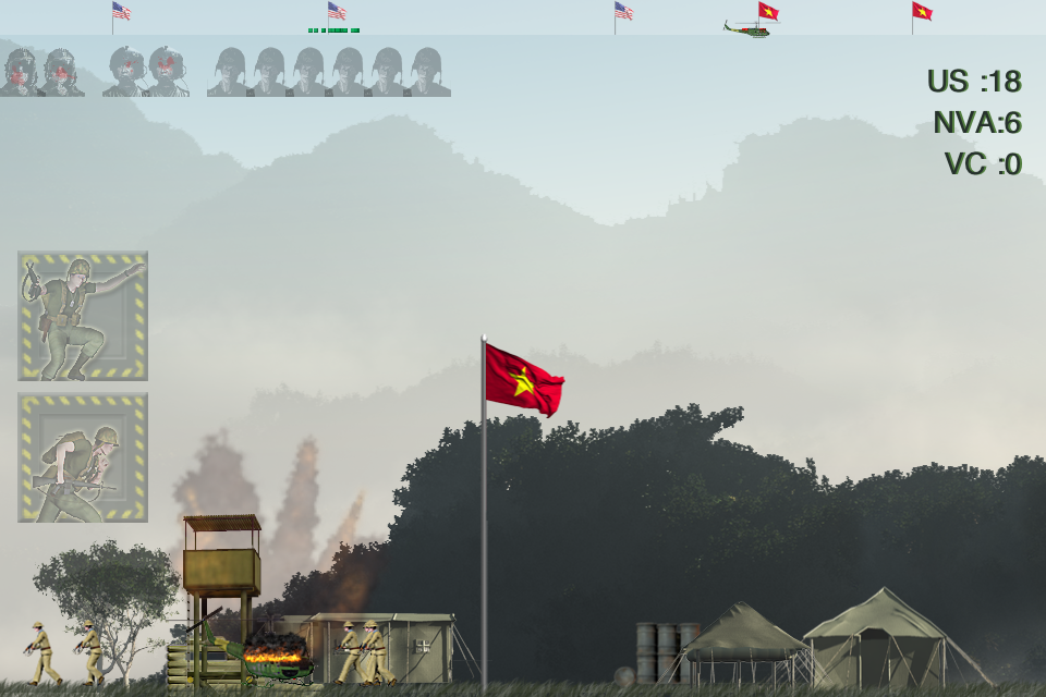 - Using your chopper and ground troops, take out all soldiers in an enemy village to rustle control from the NVA and hoist an American flag signalling the village is now under American control. Controlling villages will stop NVA troops from spawning in that area.